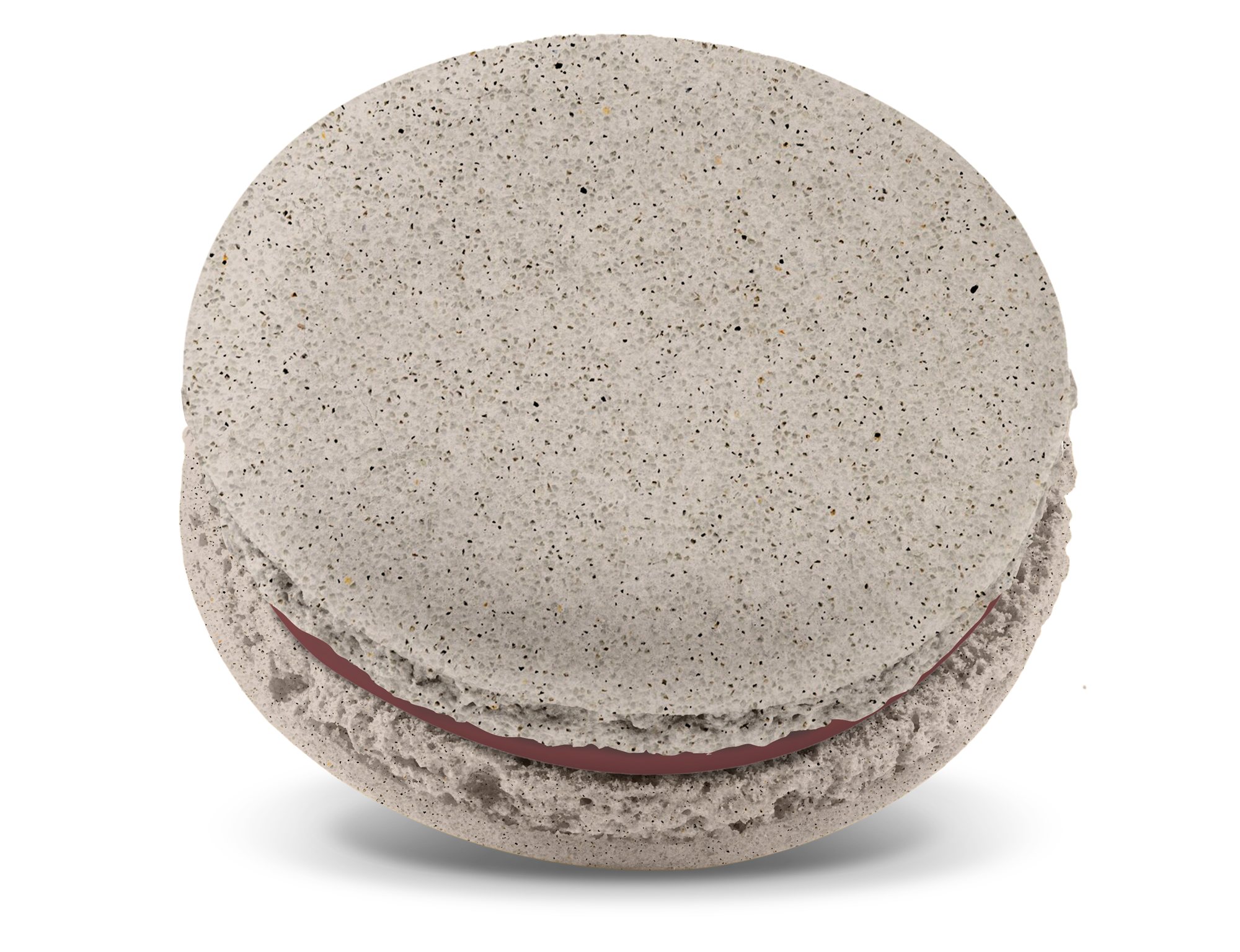 Tészta: Mandula 29%, kristálycukor, porcukor, tojásfehérje, ivóvíz, citromsav-monohidrát, színezék: E422, E1520, E124, E129, E122, E104 Töltelék: Fehércsokoládé 50% (cukor, kakaóvaj, teljes tejpor, emulgálószer: szójalecitin, természetes vanília aroma), Meggy gyümölcspüré 25%, tejszín, vaj, glükózszirup, vanília kivonat (cukor, glükóz, növényi kivonatok, vanília), savanyúságot szabályzó anyag (citromsav)